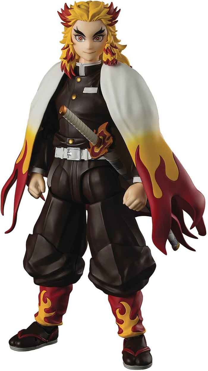 Description: Kyojuro Rengoku from DEMON SLAYER joins S.H.Figuarts. With a wide variety of facial expression parts and a wide range of motion, you can recreate famous scenes from the Mugen Train arc with Akaza. [Set Contents] Main body, 3 pairs of interchangeable hands, 5 interchangeable expression parts, Nichirin sword set.