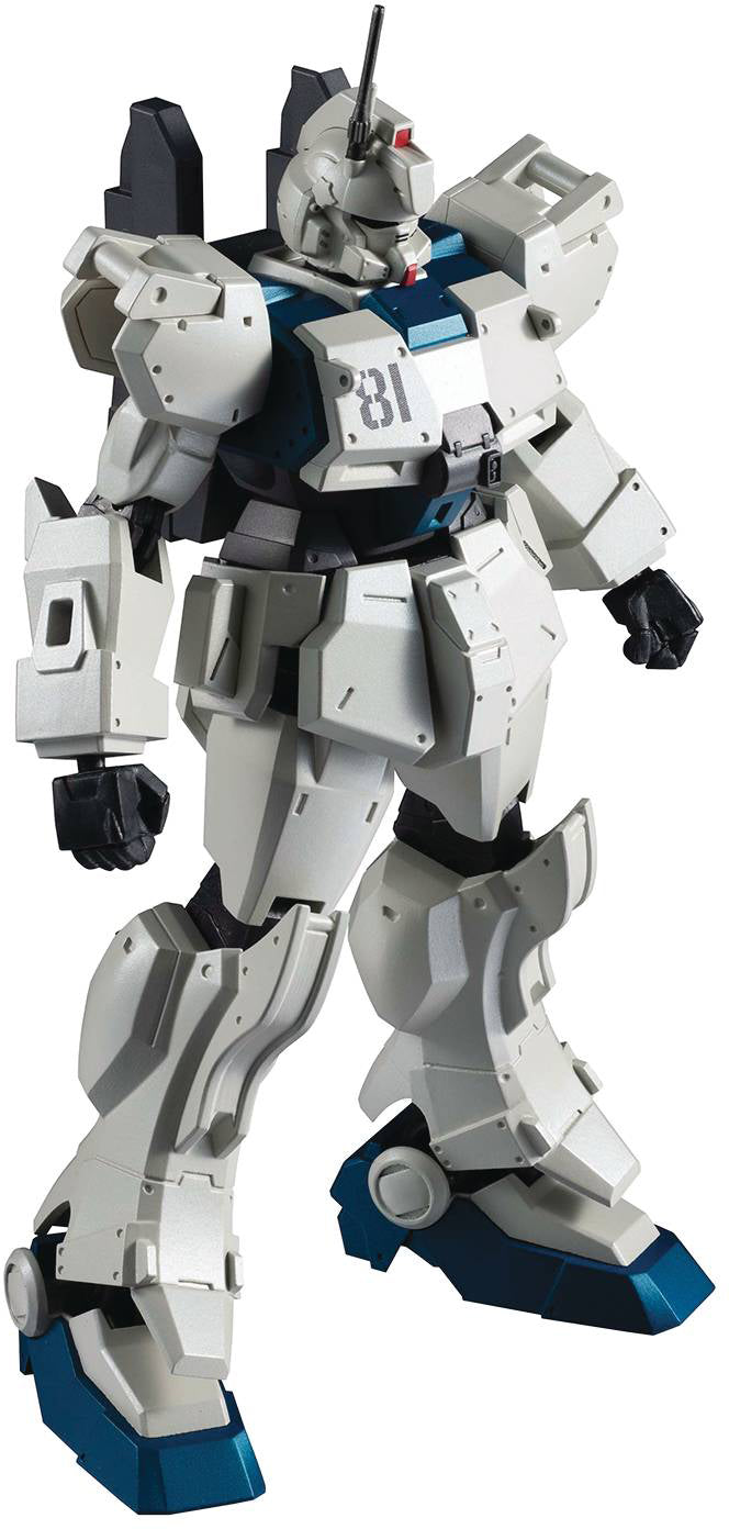 Description: From Tamashii Nations. This variant of the Gundam Ground Type built from spare parts made a name for itself under the pilot Shiro Amada. Part of the third wave of figures added to the popular and highly posable GUNDAM UNIVERSE line developed for North America, and enjoyed all over the world. This figure of the Ez-8 immortalizes the classic mobile suit! It includes two beam sabers, rifle, shield, an optional pair of hands, a 100mm machinegun, and a Tamashi STAGE connector joint.