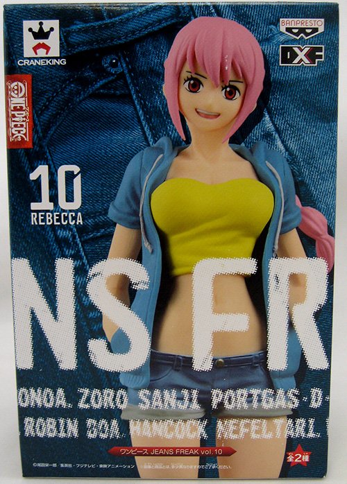 Description: From Banpresto. Banpresto continues its series of figures based on the world renowned anime show One Piece: "Jeans Freak," which has your favorite One Piece characters wearing their favorite jeans. Rebecca was selected as the tenth character for the series by the votes of One Piece fans, and she sports a pair of denim cut offs. Figure A (Blue Jeans) and Figure B (Vintage Blue Jeans) come with figure stands.
