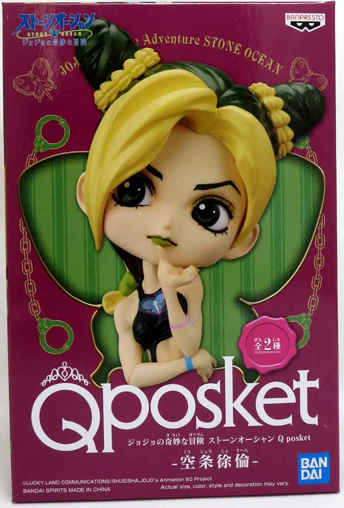 Description: From Jojo's Bizzarre Aventure Part 6: Stone Ocean, Jolyne Cujoh joins the Q-Posket figure line! Each Q-Posket figure stands about 5 1/2" tall and comes in a printed box..