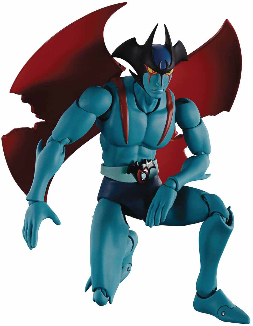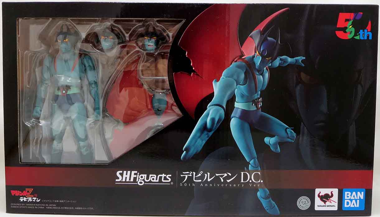 Description: The antihero Devilman, another creation of the legendary Go Nagai of Mazinger Z fame, re-joins S.H.Figuarts after a six year hiatus! It features renewed coloring and options (a damaged Devil Wing, a "pained" expression part) designed to replicate his appearance from the anime classic Mazinger Z vs. Devilman. It even comes a 50th Anniversary special item: a Jet Scrander Z-mark tailwing option for the Soul of Chogokin GX-105 MAZINGER Z -KAKUMEI SHINKA- (sold separately.).