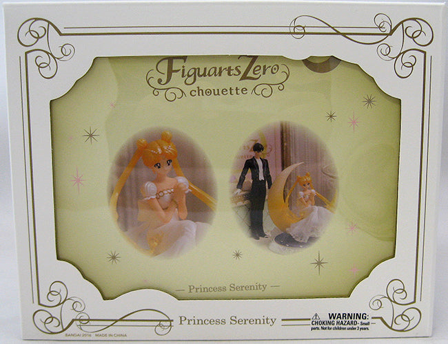 Description: From Tamashii Nations. A new line of delicately enchanting diorama statuettes are coming to FiguartsZERO. Called FiguartsZERO Chouette, the first edition to the line will be the charming Princess Serenity herself. Princess Serenity sits on a pearlescent crescent moon floating in a pool of misty water and flower petals. Clear parts have been carefully utilized in her hair and dress. Her dress has also been sculpted with the utmost care to give a sense of graceful fluidity to match the watery scene. Set includes the special display base so you can show Princess Serenity off at home or work.