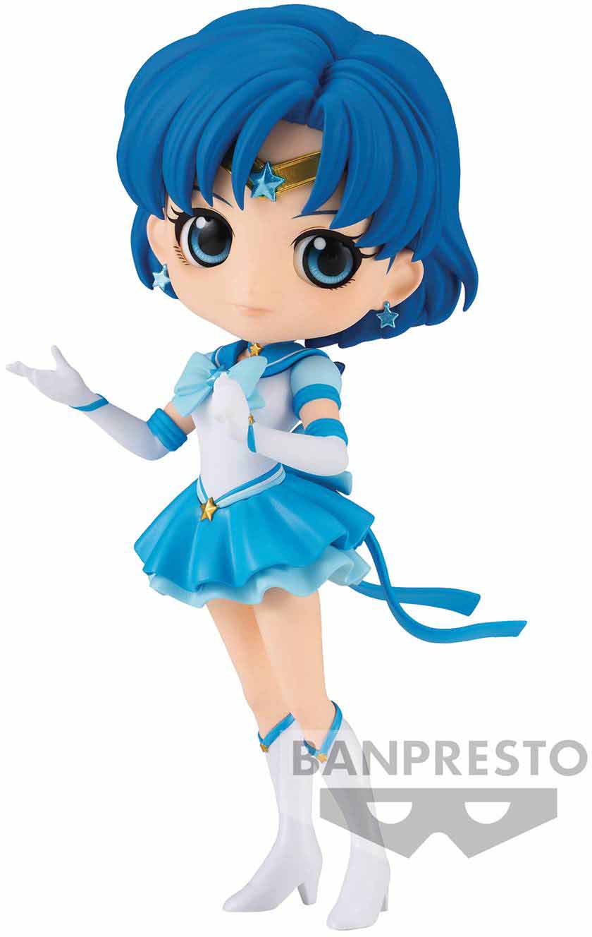 Description: Bandai Spirits Banpresto is proud to announce their newest release Eternal Sailor Mercury (Ver. A)! Standing at approximately 5.5" tall, Sailor Mercury is seen in their popular pose. Be sure to collect this and enhance your display with other incredible Q posket! Q posket is a collectible figurine line created by Banpresto. With glossy eyes and charming cheeks, the finest quality and meticulous design of all you favorite characters!.