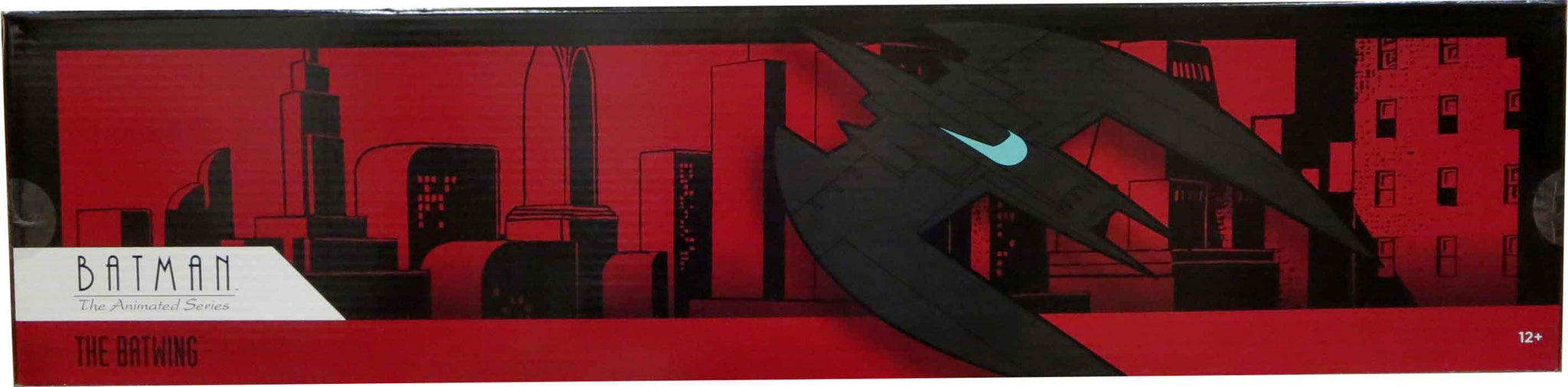 Description: Complement your Batman: The Animated Series Batmobile with this jaw-dropping 37" long Batwing replica. Featuring retractable landing gear, battery-powered interior lights and exhaust, and a slide-open cockpit canopy that fits two 6" action figures, this sleek replica will enhance your Batman collection.