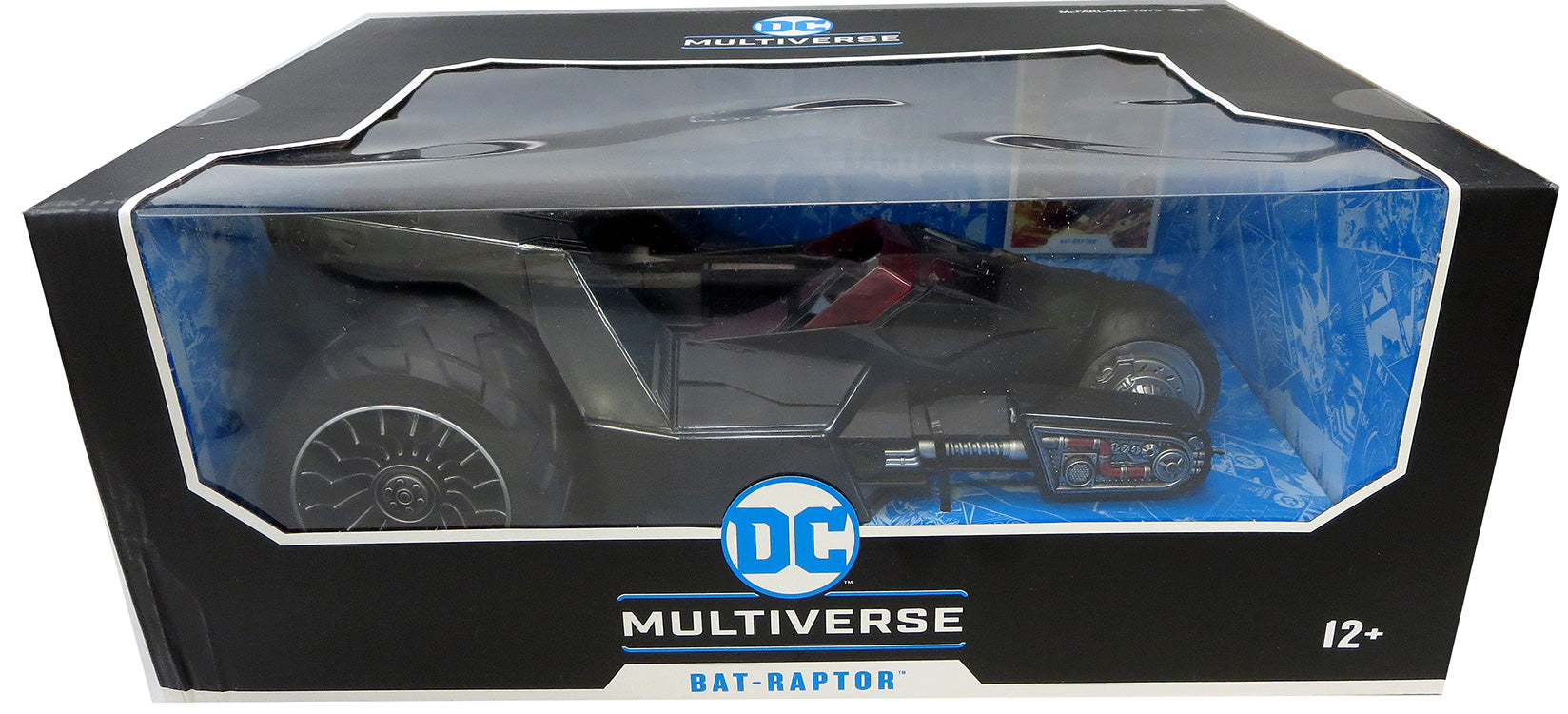 Description: From TMP/McFarlane's Toys. DC Comics and McFarlane's toys have combined their powers to create the perfect superhero team! This 12" long Bat-Raptor Vehicle features a detailed sculpt, telescoping front, and movable wheels! The Bat-Raptor comes packaged in a collector-friendly window box that's perfect for display.