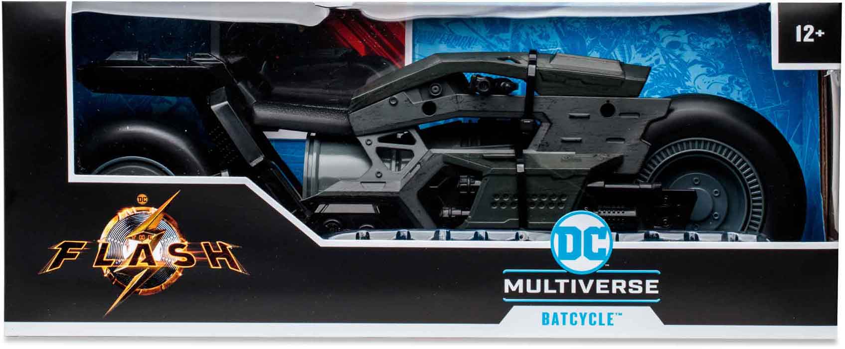 Description: The Batcycle pushes the boundaries of vehicular technology. The Batcycle gives Batman the immense power, speed and tactical weaponry required to tear through the streets of Gotham City in pursuit of his targets. This incredibly detailed Batcycle vehicle is based on its look in the upcoming movie The Flash. Designed with rotating wheels, the Batcycle includes a collectible art card with vehicle art on the front, and vehicle biography on the back. Collect all McFarlane Toys DC Multiverse Figures!.