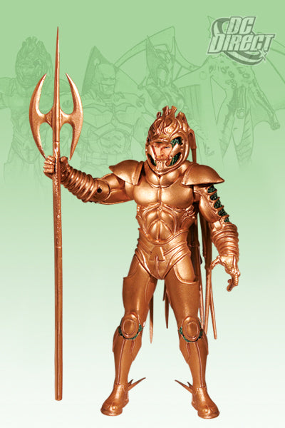 Description: DC Armory Action Figues Series 1: Aquaman Aquaman cuts a regal figure in this brass armour, reminiscent of Verne's "20,000 Leagues Under the Sea". Able to communicate and control undersea creatures as well as the currents of the ocean, the Atlantean Sea King is a formidable opponent to any who seek to do evil. Based on unique armor designs from the most popular comics! Each figure features multiple points of articulation and a base.