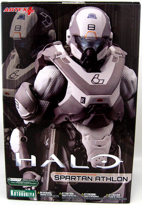 Description: A KOTOBUKIYA Japanese import! Kotobukiya's innovative and popular Halo ARTFX+ Statue series continues, adding the latest and greatest in armor technology with the SPARTAN ATHLON! First there was the iconic Master Chief along with Mark V and VI armors, then came a basic techsuit body and the Mjolnir Mark V/VI DX Two Pack. Now coming to you right out of Halo 5: Guardians is another combo set offering a new internal techsuit body and removable slide/snap on armor pieces. The heavy duty assault armor is three-toned with ghostly white, gray, and black for a super clean look, and orange details and the blue visor really pop. The Athlon armor set comes with additional interchangeable parts like hands in different positions, and like the rest of the new Halo ARTFX+ line the internal techsuit body even has limited articulation for posing options! Sculpted by M.I.C., the Spartan Athlon stands nearly 8 1/2 inches tall (1/10th scale) and comes with magnets in his feet for added stability on his included metal display base. Collect all of the Halo Spartans and Master Chief ARTFX+ statues!