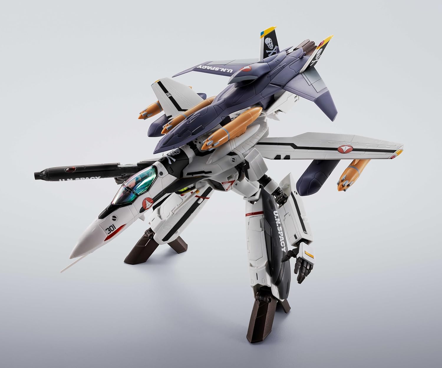 Description: The VF-0S piloted by a young Roy Focker appears equipped with the most powerful gear! The VF-0S Phoenix, released in 2022 as the first in HI-METAL R Macross Zero series, is back in a set equipped with Ghost and various weapons. You can enjoy the three-stage transformation with Ghost equipment or without the equipment. A dedicated pedestal with a skull mark printed on it is also included. [Set Content] Main body, 4 pairs of interchangeable hands, Pilot figure, Main wings (L/R), Suspension wings (L/R), Small wings for Battroid mode, Gunpod, 2 Pitot tubes for Fighter form (including spare), Pitot tube for Battroid, Air intakes (open) left and right, Landing legs (front and rear wheels), Leg boosters (L/R), Set of display joint parts, QF-2200D-B main body, 8-barreled general-purpose micro missile launcher (for wing suspension) x 2, 8-barreled general-purpose micro missile launcher (for back suspension) x 2, Medium range mobile missile pod x 2, Jig parts for ghost equipped battroid, Back parts left and right for ghost equipment, Support rod, Dedicated stand .