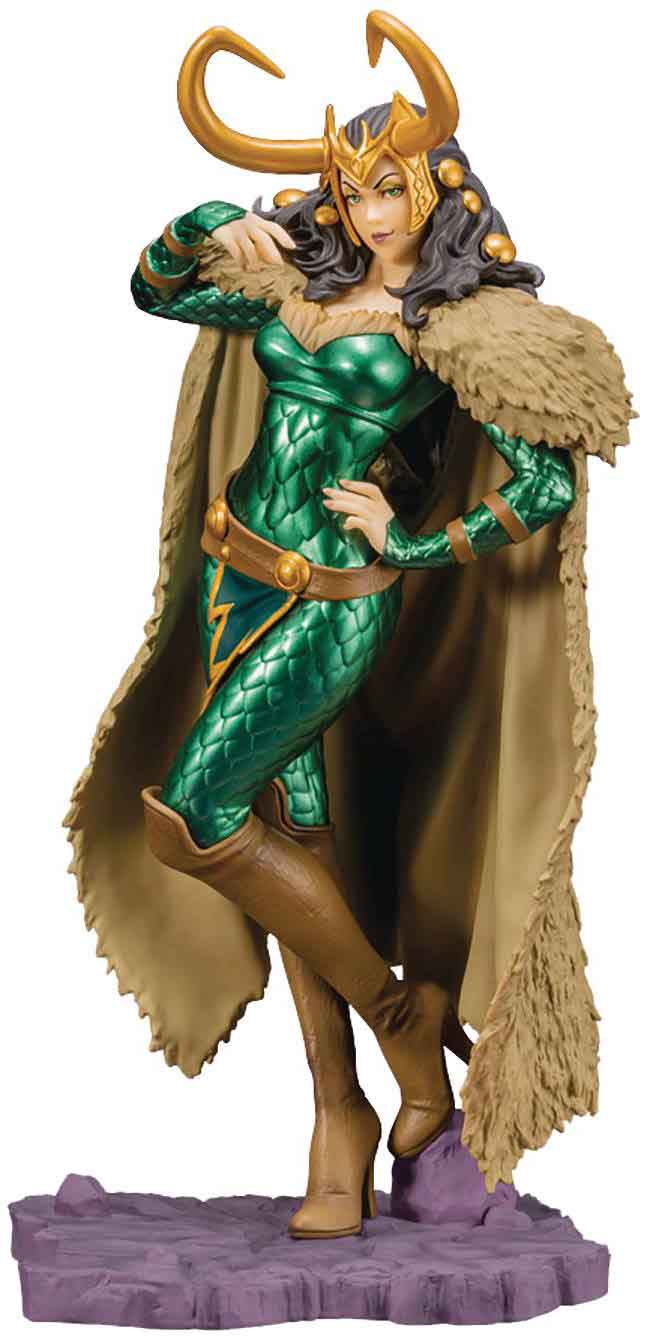 Description: After Ragnarok, the "end" in Norse mythology, Loki returns as a young woman. For the first time in six years, Shunya Yamashita's astounding BISHOUJO statue of Loki will be reproduced. Taking possession of Sif and gaining a female body, Loki has been sculpted into a gorgeous, fashionable, and voluptuous figure. The base can be connected to that of Marvel Thor (Jane Foster) Bishoujo Statue. The color of the base and packaging have been revised, and parts added for this reproduction. . 1