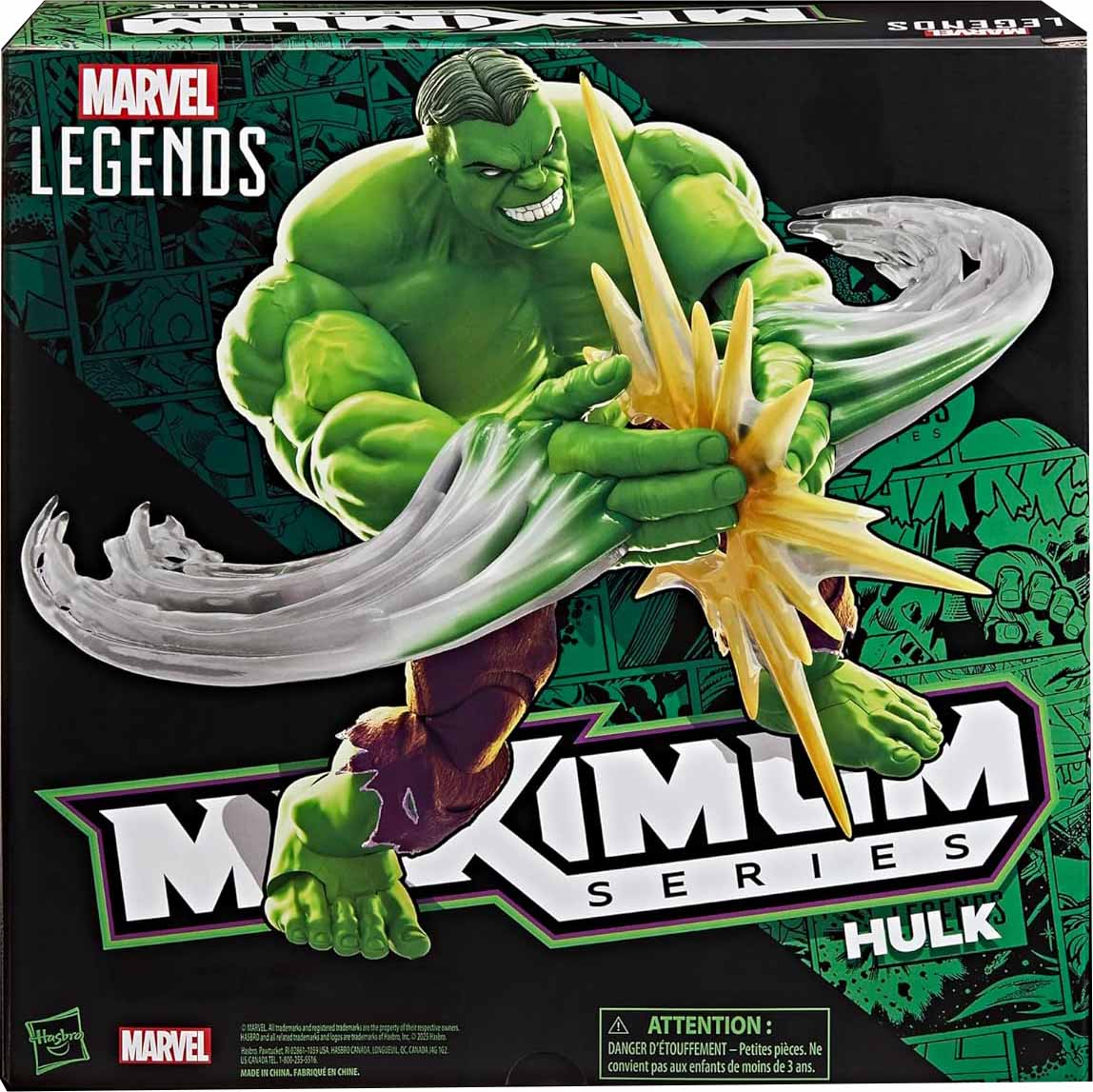 Description: Bring the excitement and wonder of the Marvel Universe to your collection with the Hasbro Marvel Legends Maximum Series Hulk figure! This collectible figure is detailed to look like the character from Marvel's Hulk comics. Standing a massive 8.5 inches (21.5 cm) tall, this Hulk towers over other 6-inch scale Marvel figures and features 30 points of articulation with poseable head, arms, feet, and legs. Maximum Series action figure set is bursting with 11 accessories, including: alternate raging heads; 2 grapple hands; 2 open palm hands to display with 3 thunderclap effects; and a missile accessory to pose Hulk ripping to pieces. Hasbro Marvel action figures' 6 inch scale make them great for posing and displaying in fans' collections. Reimagine Hulk comics-inspired scenes on your shelf with Marvel Legends action figures. China