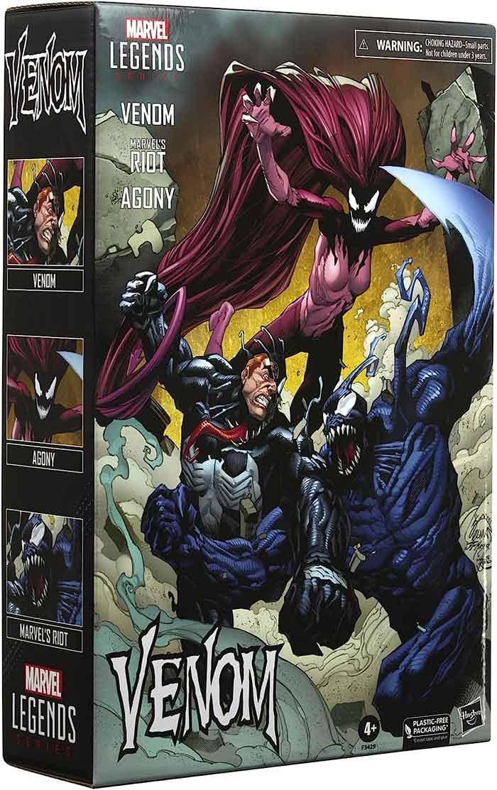 Description: MARVEL SYMBIOTE MULTIPACK: The alien symbiotes Venom, Agony, and Marvel’s Riot swing into Marvel legends action figure!