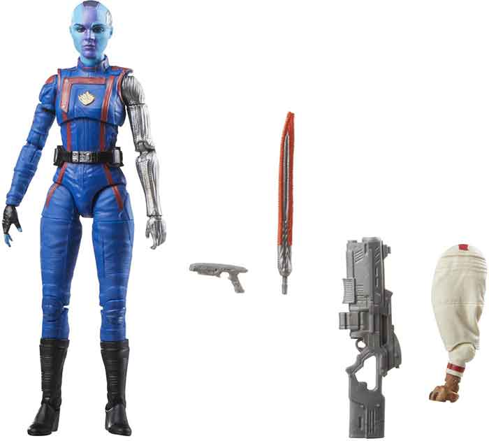 Description: From Hasbro Toy Group. This collectible 6-inch-scale Marvel Legends figure is detailed to look like the Marvel's Nebula character from Marvel Studios' Guardians of the Galaxy Vol. 3, featuring premium detail, multiple points of articulation, and 4 movie-inspired accessories, including two blaster accessories.. 2