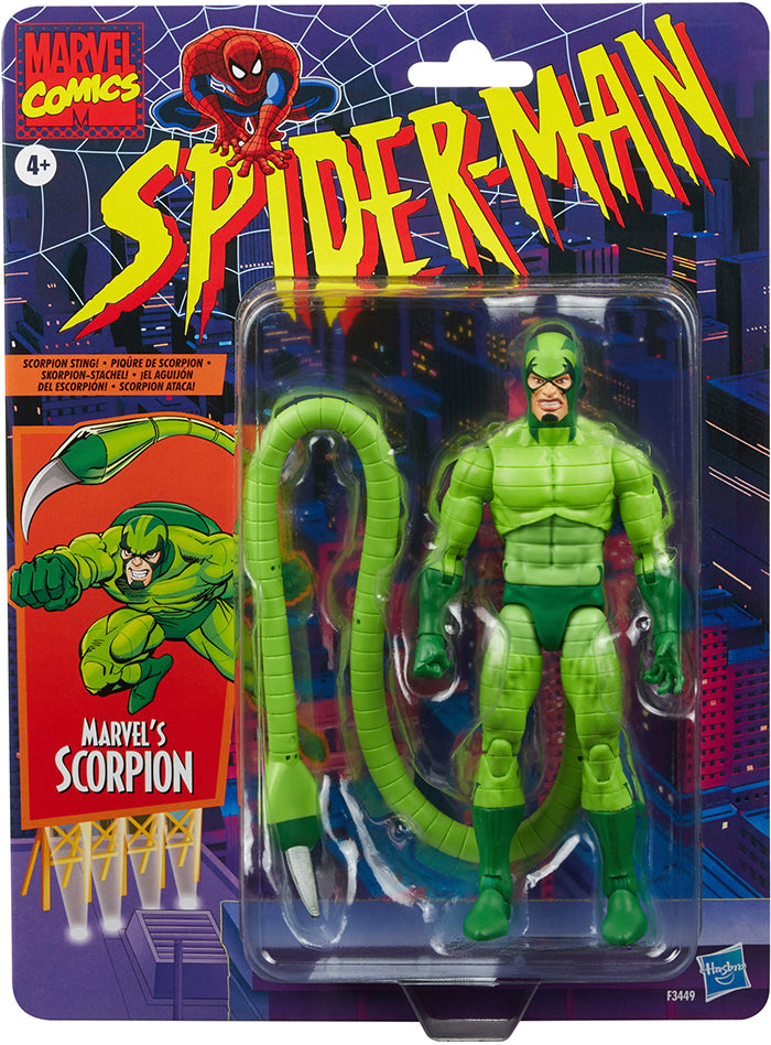 Description: Spider-Man's green, grimacing enemy Scorpion crawls onto the Marvel Legends scene with this 6-inch comics figure! Inspired by the comics, this Marvel's Scorpion figure features the Scorpion's classic deco from his appearances throughout Marvel history! The Marvel's Scorpion figure is highly posable for display and play and comes in retro-style packaging to recreate the classic Marvel Legends releases! . 2