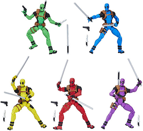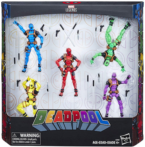 Description: Deadpool is hiring, and boy, are the benefits great. Tight, colorful spandex suits, a bunch of weapons, and hit-list to die for � literally! Just one rule: hands off the red suit � that�s reserved for one Wade Winston Wilson. Collect figures like Deadpool collects heartless mercenaries with the Marvel Legends Deadpool�s Rainbow Squad 5-pack, featuring Marvel�s Solo, Marvel�s Terror, Marvel�s Slapstick, Foolkiller, and Deadpool figures. Each figure features multiple points of articulation, Deadpool-inspired design, and multiple mercenary-inspired accessories. Only the best and brightest for Deadpool! Copyright 2017 Marvel. Hasbro and all related terms are trademarks of Hasbro.