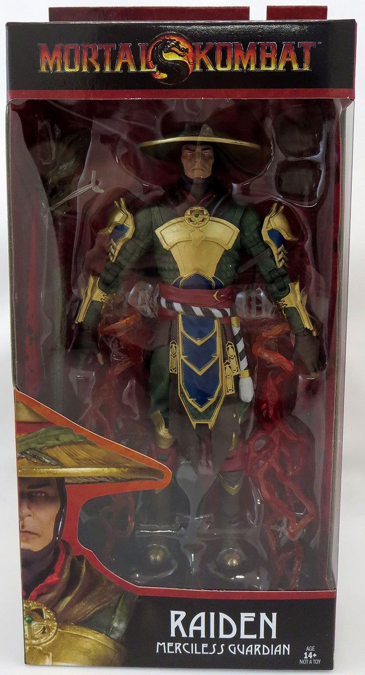 Description: Collect your favorite fighters from Mortal Kombat with these 7-Inch scale action figures! Raiden in his Merciless Guardian skin comes with a Base, Staff and two Lightning Bolt Accessories, and is designed for ultra articulation with 22 moving parts! Each figure comes showcased in Mortal Kombat themed window box packaging!