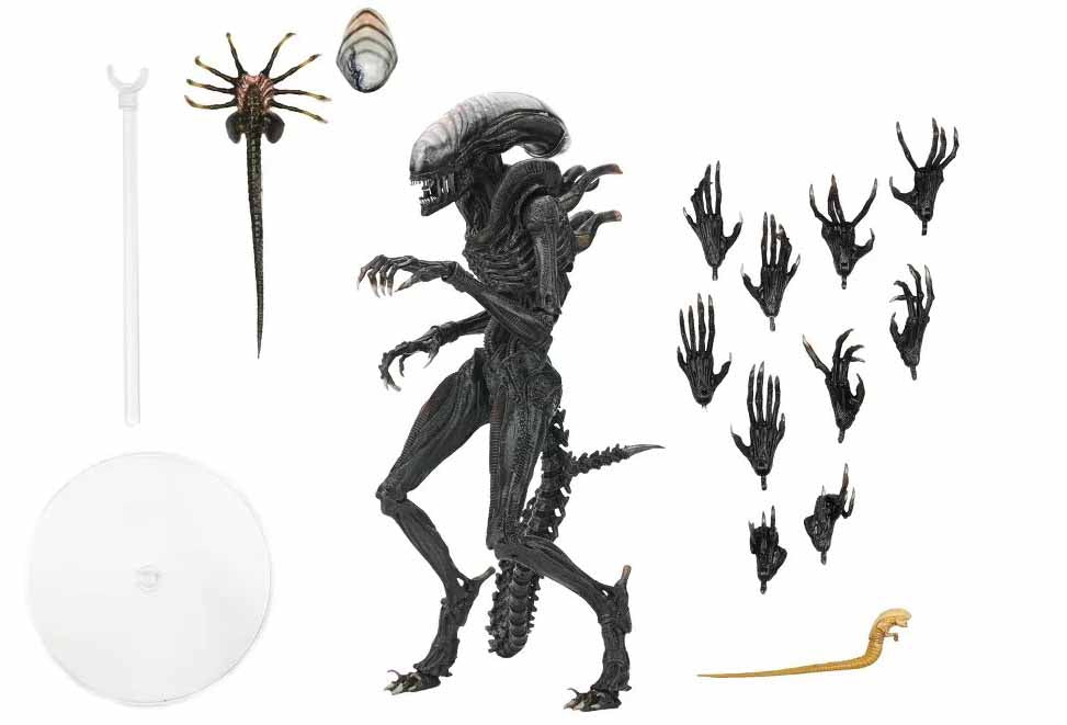 Description: While scavenging the deep ends of a derelict space station, a group of young space colonizers come face to face with the most terrifying life form in the universe. NECA's Ultimate action figure version of the Scorched Xenomorph stands over 9" tall with 23 points of articulation and features an opening jaw with extending inner mouth and wired tail. The screen-accurate figure comes with interchangeable dome parts for a drone Xenomorph Warrior look, perfect for army building! Other accessories include interchangeable hands, facehugger and chestbursters with wired tails, and a display stand for dynamic posing. Comes in window box packaging..