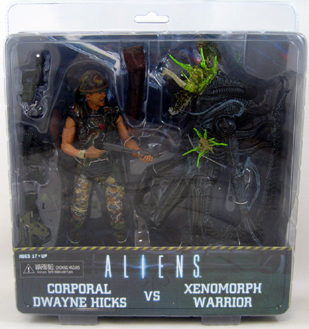 Description: This special edition 2 pack features an all new version of Hicks, sporting a brand new aggressive combat headsculpt, helmet, and headset along with pulse rifle, shotgun, motion detector, shoulder lamp, welding torch and more. The Aliens Warrior includes an exclusive �shotgunned� head reflecting the shotgun blast damage he takes in combat with Hicks. Both figures feature over 30 points of articulation and are unique to this set and available nowhere else.