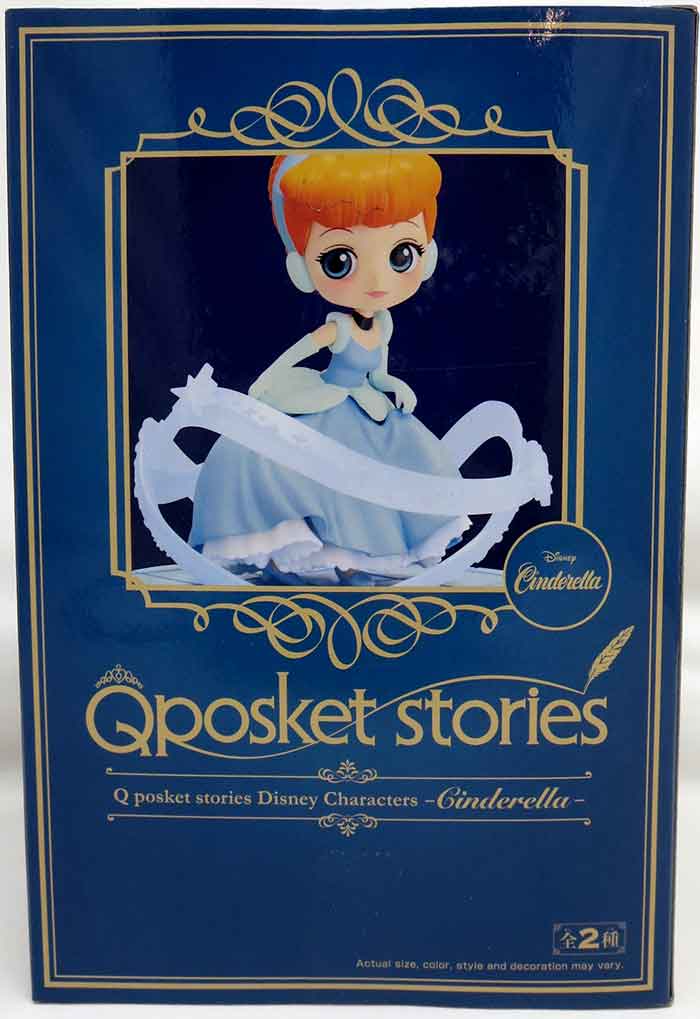 Description: Q posket stories is excited to add a classic Disney character, Cinderella to the collection! Cinderella stands in her ball gown at approximately 3.5" tall with additional effects and comes in two color variations (sold separately). Be sure to collect and add to your display of Q posket!.