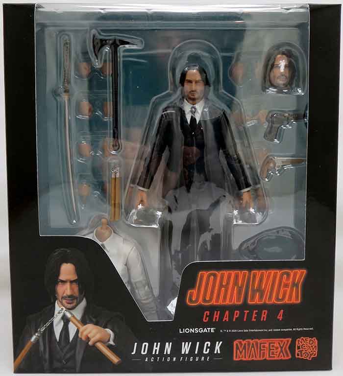 Description: Introducing MAFEX action figure No.212, John Wick. Standing at approximately 6.3 inches tall, this figure perfectly captures the essence of the iconic protagonist from John Wick: Chapter 4. It features two interchangeable head parts, an additional upper body part without the jacket, and an impressive array of weapon parts. Complete with a poseable stand, this figure combines exceptional design and articulation for an ultimate addition to your collection..