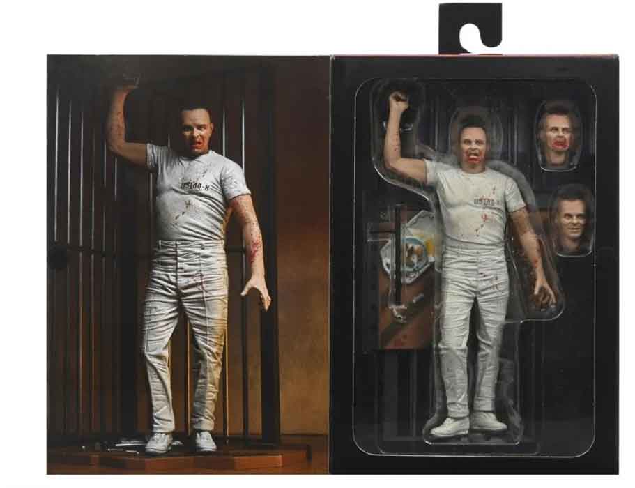 Description: Add the iconic prison escape scene from The Silence of the Lambs to your horror collection! This chilling figure of Dr. Hannibal Lecter in his blood-spattered, white prison uniform captures the moment he takes murderous revenge on his captors. Portrayed by Oscar winner Anthony Hopkins, the brilliant and psychotic doctor comes to life as a 7" scale action figure with interchangeable heads, baton, and diorama base of his prison cell escape scene..