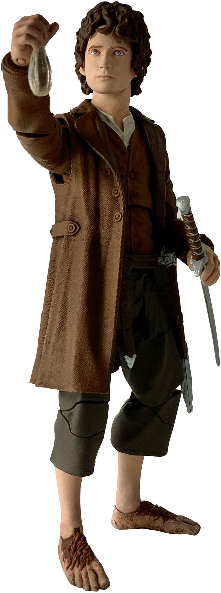 Description: A Diamond Select Toys release! Form the Fellowship! Add the Hobbit that started it all to your 7-inch Lord of the Rings collection with this highly anticipated release! Featuring movie likeness, this approximately 4-inch figure shares the series with a 7-inch Nazgul/Ringwraith! Each includes character-appropriate accessories, as well as 16 points of articulation, and each comes with a part of the 13-inch Sauron build-a-figure! Each figure comes packaged in a full-color window box with hangtag. Designed by Yuri Tming and Eamon O'Donoghue, sculpted by Gentle Giant Studios. .