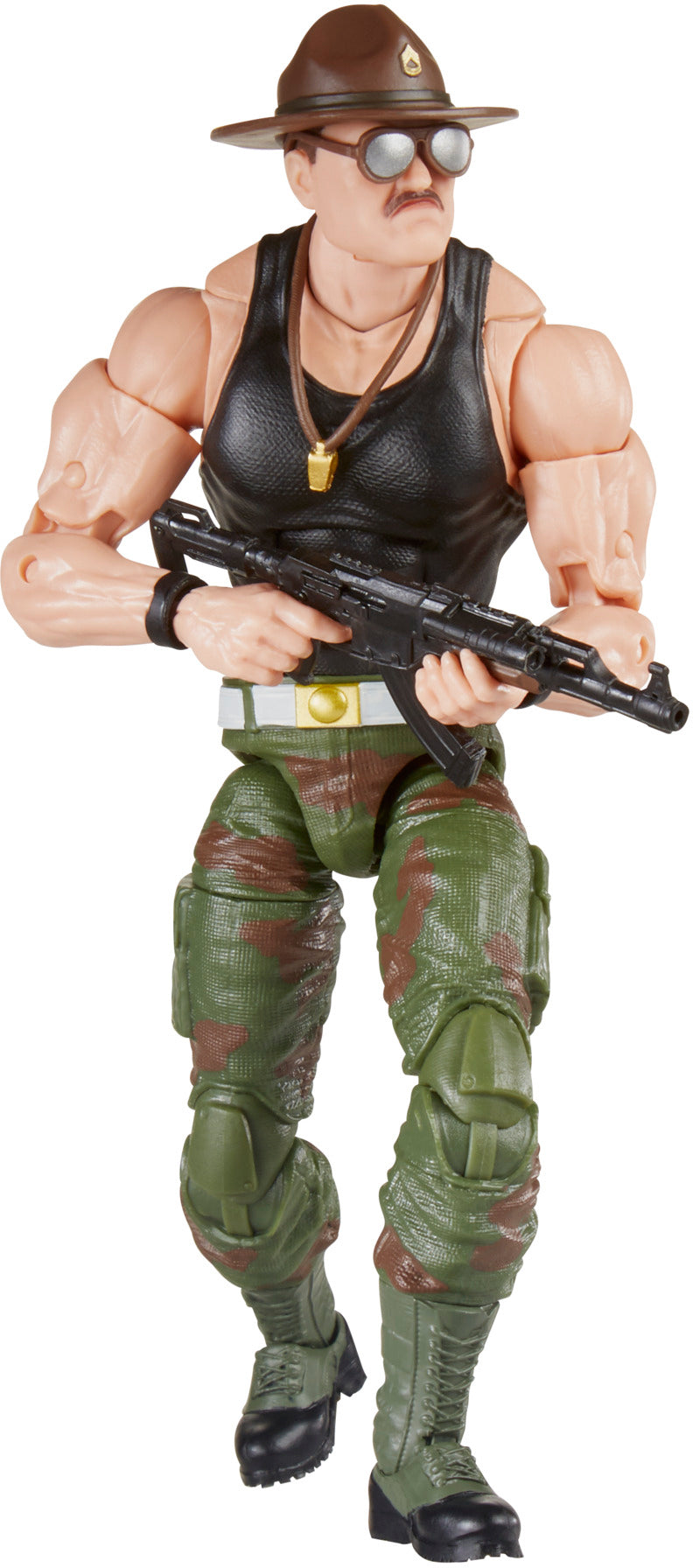 Description: This Sgt. Slaughter figure comes ready for action, with multiple points of articulation for high poseability and 14 character-inspired accessories including his signature drill sergeant hat, sunglasses, whistle, instructor baton, miniature carded action figure, 8 interchangeable hands, and additional weapon accessories; plus a footlocker to stow all his gear! And with custom artwork by Adam Riches highlighting his media-spanning career in the Joe universe, the G.I. Joe Classified Series Sgt. Slaughter package will make a mark on shelves. .