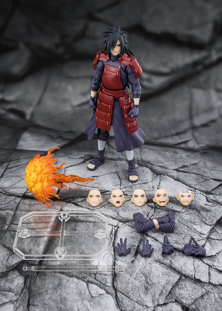 Description: From the S.H.Figuarts NARUTO series comes Madara Uchiha -Legend of Darkness-! Rebuilt from the ground up from the 2017 release S.H.Figuarts Madara Uchiha, this new version includes wrist parts and effect parts to recreate Fire Style ninjutsu battle scenes. With a variety of parts plus refined sculpting and articulation, you can recreate Madara’s dynamic, overwhelmingly powerful presence. [Set Contents] Main figure, 3 types of interchangeable hand parts (left and right), 4 types of interchangeable facial expressions, A set of interchangeable crossed arm parts, Katon no Jutsu effect parts, A set of support poles for the Katon no Jutsu effect parts [Bonus Parts] Interchangeable facial expressions for S.H.Figuarts Naruto Uzumaki - The Power That Connects Countless Feelings to the Heart (sold separately).