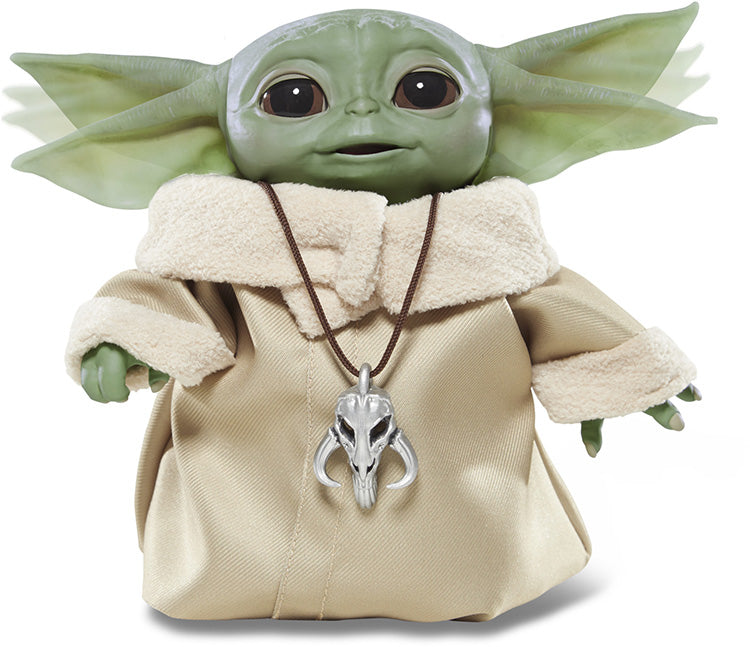Description: Star Wars The Child Animatronic Edition with Over 25 Sound and Motion Combinations, The Mandalorian Toy. Touch the top of The Child Animatronic Edition’s head to activate sound effects inspired by The Mandalorian, including happy and excited, giggles and babbles, tired and sleeping, and Force effects sounds. Features motorized movements, including a head that moves up and down, ears that move back and forth, eyes that open and close, and more.