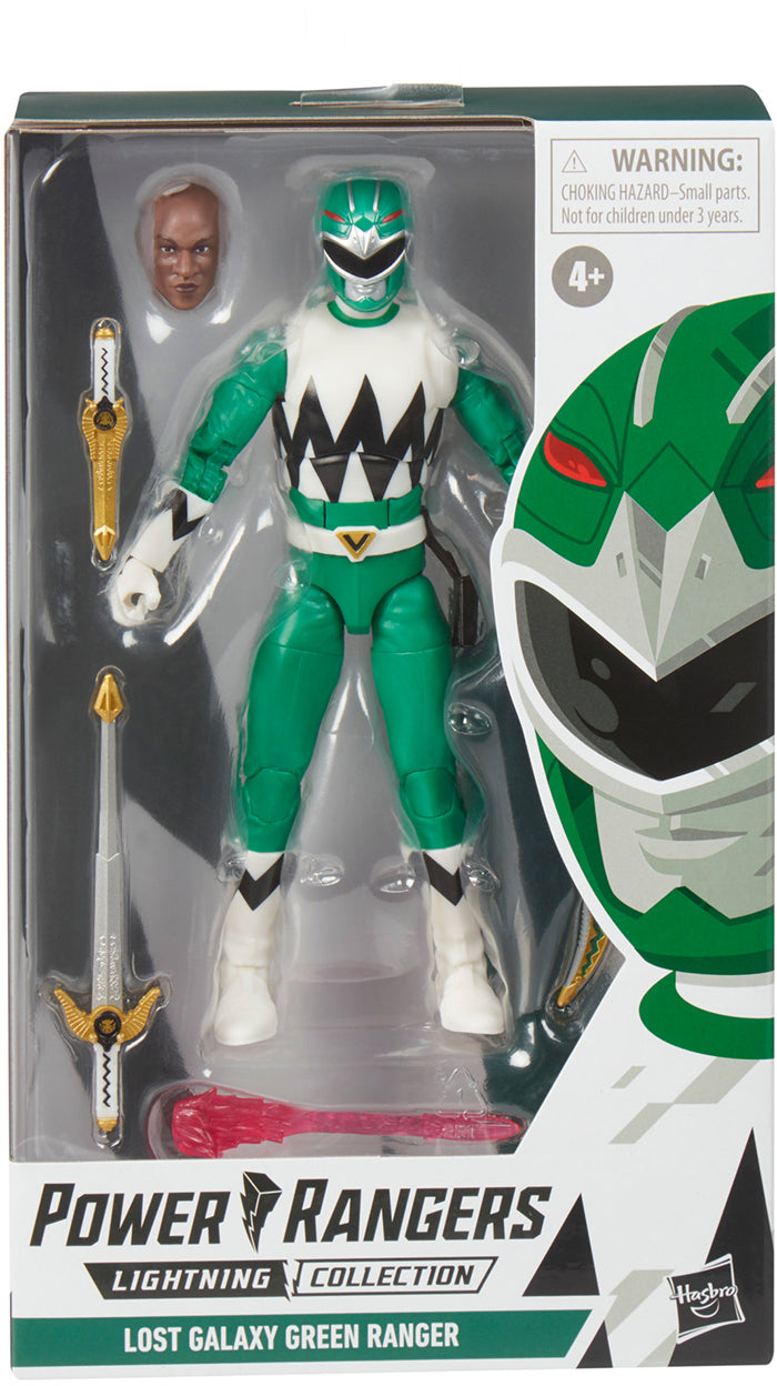 Description: IT'S MORPHIN TIME! From Dino Fury back to the original Mighty Morphin Power Rangers, the Power Rangers have brought teamwork, action, and adventure to generations of fans. This 6-inch Lightning Collection Lost Galaxy Green Ranger figure features premium paint and decorative details inspired by the show, over 20 points of articulation for high poseability, swappable heads to display the Ranger with or without his helmet, Quasar Saber (2 versions), Green Transdagger, blast effect piece, and an extra pair of hands for more ways to play or display. Go Go Power Rangers! . 2