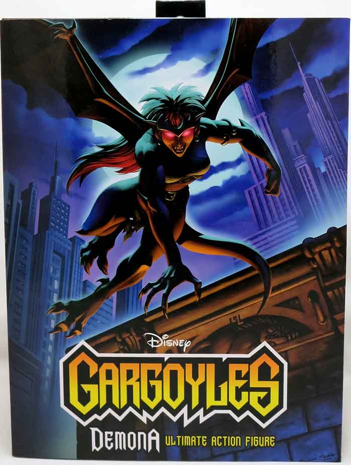 Description: The time of the Gargoyles has come again! The clan's nemesis Demona joins the Ultimate line in 7" scale, with a wingspan of 18 inches! The figure features full articulation, including on wings and tail, and comes with plenty of accessories: particle beam weapon, bazooka, Grimorum Arcanorum book that opens, and interchangeable heads and hands. Comes in display-friendly window box packaging with opening flap..