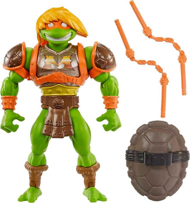 Description: Presenting the newest crossover figures in the Master of the Universe line! Inspired by the Teenage Mutant Ninja Turtles and the MOTU toy line from the 80s, these awesome figures features your favorite turtles and Masters characters in a mutated mash-up! Built at 5.5-inch scale, with 16 points of articulation for great battle moves and poses, they come with at least 1 accessory..