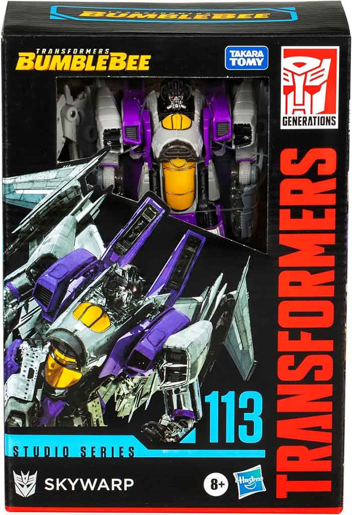 Description: TRANSFORMERS: BUMBLEBEE SKYWARP: This Transformers Studio Series 113 Skywarp action figure is highly articulated for posability and features movie-inspired deco and details