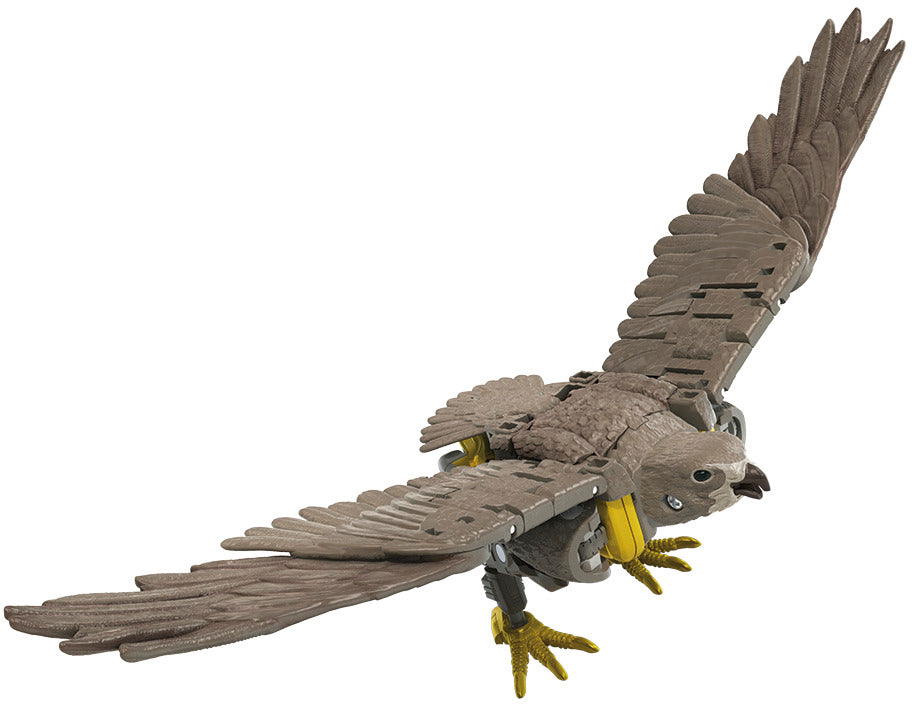 Description: Beastify the battlefield! Worlds collide when the Maximals and Predacons join the fight, coming together with the Autobots and Decepticons in an epic battle that will alter their destiny forever. Primal power floods the battlefield as the fierce beast modes of the Maximals and Predacons are unleashed! Unleash the primal power of the beasts with this Airazor collectible figure, featuring a detailed beast mode with intricate molded feather texture. Toy converts to Beast Wars-inspired falcon mode in 22 steps, featuring wing, lower beak, and tail feather articulation that allow for more realistic falcon poses. Comes with 2 Photon Blaster accessories that attach to figure's wrists. Weapons aside, you don't want to be at the wrong end of those talons… Includes a Golden Disk card that reveals a possible destiny of a key character. Collect other Kingdom figures to reveal all 3 alternate destiny variants for each character! (Each sold separately. Subject to availability.).