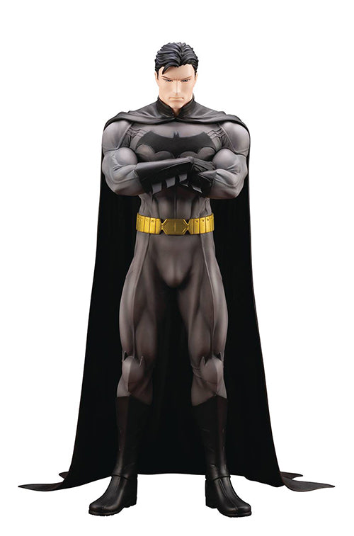 Description: From Kotobukiya. The fifth entry in Kotobukiya's up-and-coming IKEMEN series is the long-awaited head of the Batman family, the Dark Knight himself! A new original series by Kotobukiya, the IKEMEN series takes popular characters from American comics and recreates them in a unique Japanese style. From the four generations of Robin to Batman himself, these attractive statues show a novel take on the classic heroes based on art by Japanese DC Comics illustrator Ricken! The fifth entry in the series is Bruce Wayne as Batman. Naoya Mutou detailed sculpting does Ricken's art full justice through the bold and eye-catching details of Batman's strong and muscular form. You can practically feel the Dark Knight's will and determination, as he stands stoically with his arms crossed, ready to give guidance to all four generations of Robin as they protect Gotham City.Like the previous IKEMEN statues before him, Batman comes with an interchangeable head part that allows you to display him in his masked hero form. Additionally, customers who purchase the first edition of the statue will receive an additional bonus head part that shows Batman with a rare smiling expression! Collect them all to expand the fresh and ever-evolving world of the IKEMEN series! Please Note: The smiling face part will not be included in any subsequent reproductions of the statue.