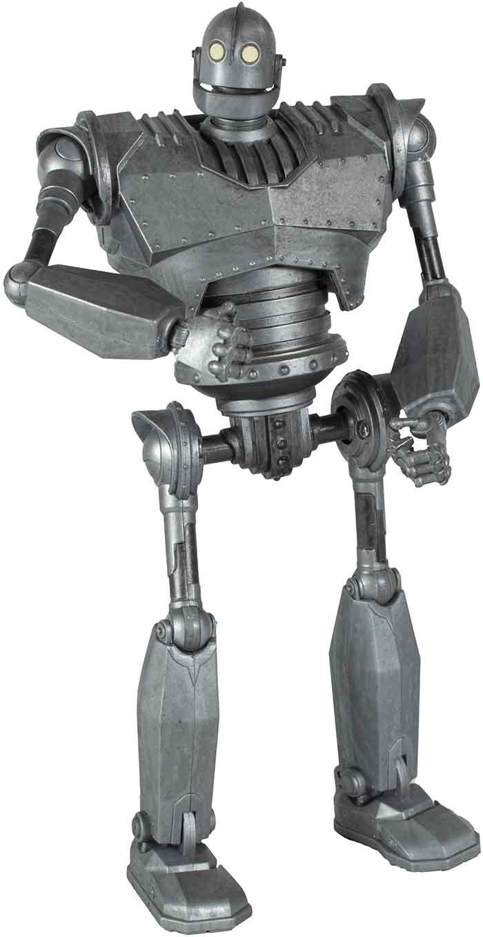 Description: Be who you choose to be! The Iron Giant returns with a new look in this all-metallic release! Featuring light-up eyes and interchangeable hands, including a laser gun hand, this approximately 8-inch action figure features multiple points of articulation and runs on two button-cell batteries (included). It comes in Select-style action figure packaging with side-panel artwork for shelf reference..