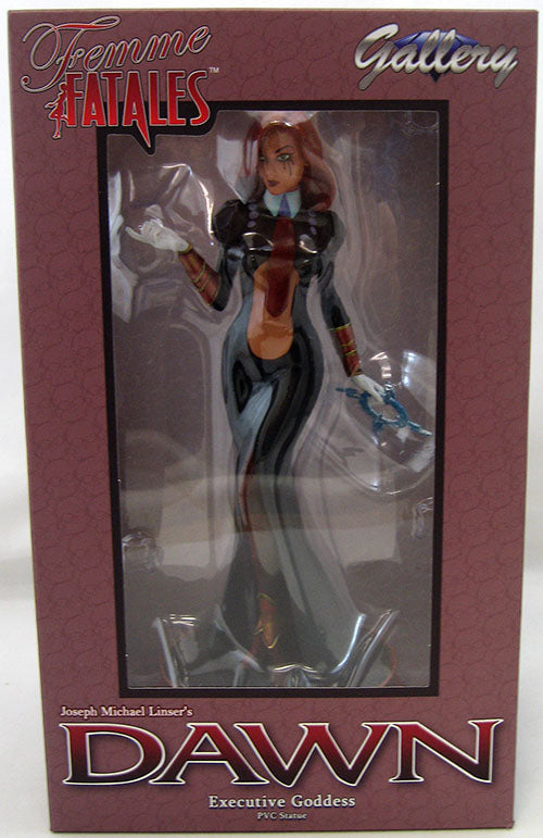 Description: A Diamond Select Toys Release! It's business time! The ephemeral Dawn, star of Joseph Michael Linsner's comic books of the same name, returns to the Femme Fatales PVC statue line with this 9-inch sculpture of her in her Executive Goddess attire! You'll have your fingers crossed for a hostile takeover once you get this statue onto your conference table! Made of high-qualiy plastic with collectible-quality paint applications, this statue comes packaged in a full-color window box. Designed by Joseph Michael Linsner, and sculpted by Sam Greenwell!