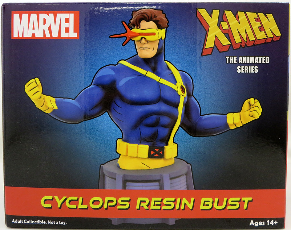 Description: A Diamond Select Toys release! Scott Summers kicks of a new line of busts based on the classic X-Men animated series! Depicting Cyclops with a gleam in his visor and his fists at the ready, this approximately 6-inch resin bust is limited to only 3,000 pieces and comes packaged with a certificate of authenticity in a full-color box. Designed by Barry Bradfield, sculpted by Joe Menna.