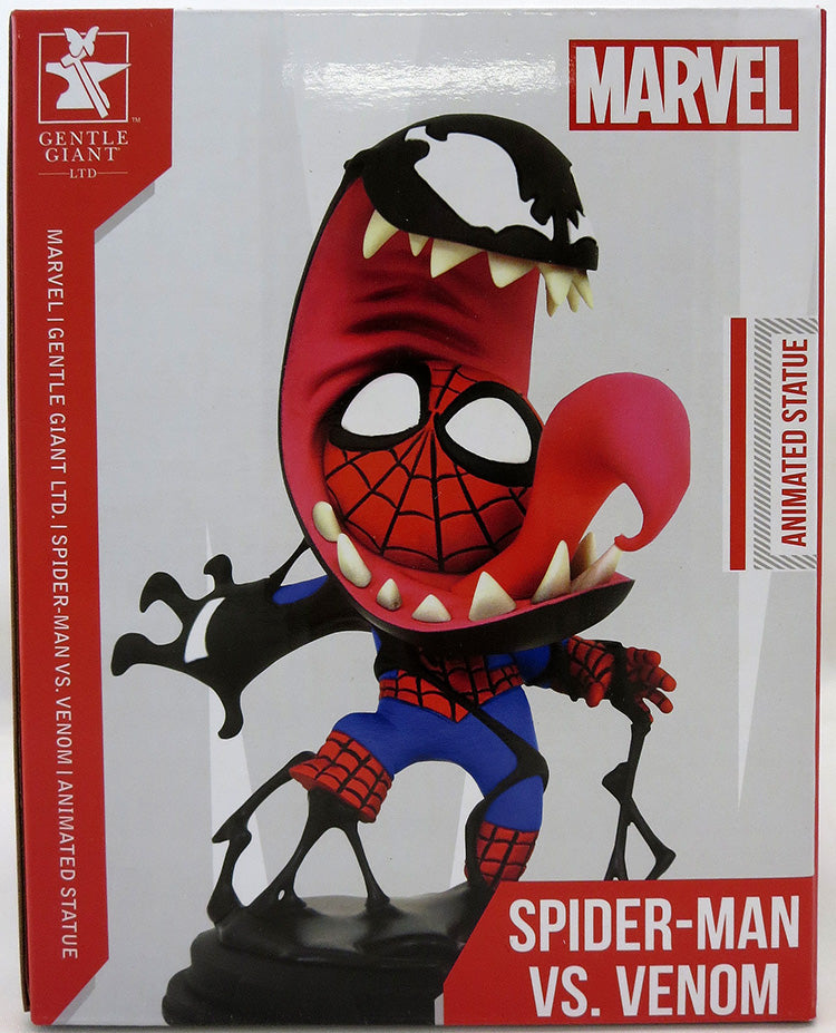 Description: A Diamond Select Release! It's a sticky situation in this new Marvel Animated Statue from Gentle Giant! Spider-Man is all wrapped up in this Venom symbiote in this approximately 6 1/2 inch resing sculpted based on official Marvel Comics artwork. The statue comes packed in a full-color window box. Sculpted by Gentle Giant Studioa.