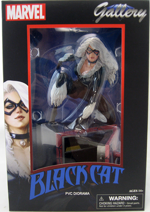Description: A Diamond Select Toys release! Don't let her cross your path! Or do! Since it's not your safe she's cracking in to, you won't mind seeing this sculpture of the Marvel Universe's resident cat burglar crouching on your shelf. Caught in the light of the Spider-signal, Spider-Man's frenemy the Black Cat wears her classic costume, and is cleaning out a safe of cash and gold. This 9-inch-scale PVC Diorama is made of high-grade plastic with detailed paint applications and was designed by Caesar and sculpted by Alejandro Pereira. Packaged in a full-color window box.