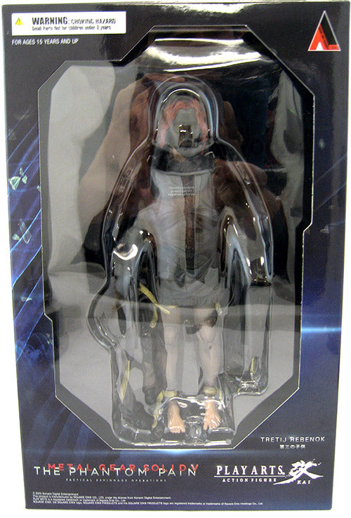 Description: From Square Enix. Clad in a gas mask and an ill-fitting black straitjacket, here's Square Enix's Play Arts KAI version of Tretij Rebenok, the 3rd Child from Metal Gear Solid V: The Phantom Pain. With the sleeves hanging down dismally and with bare feet, the 3rd Child stands just over 8" tall and projects a feeling of eeriness and mystery.