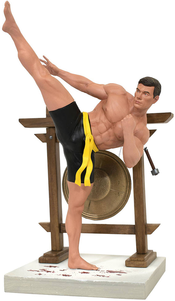 Description: The Legend begins! Diamond Select Toys kicks off a new line of Jean-Claude Van Damme collectibles with this Gallery Diorama of the Muscles from Brussels in one of his iconic, superhumanly balanced poses! Demonstrating one of his famous high kicks in front of a gong, the young JCVD stands approximately 10.5 inches tall and is made of high quality PVC. It comes packaged in a full color window box. Designed by Eamon O'Donoghue, sculpted by Rocco Tartamella! .