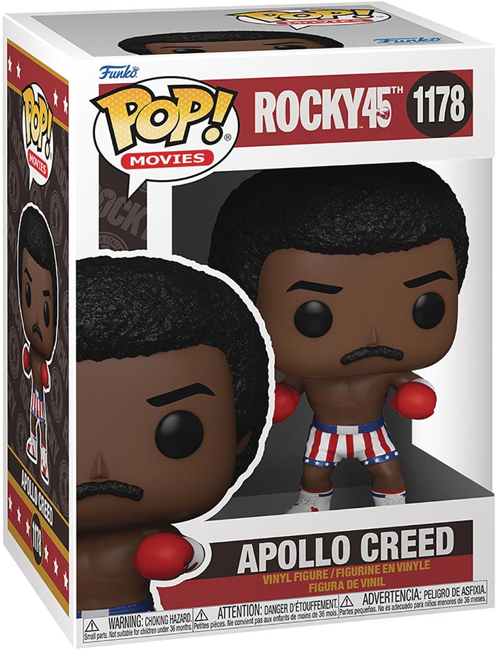 Description: It has been forty-five years since Sylvester Stallone introduced the world to boxing champion Rocky Balboa in his iconic film, Rocky. Celebrate the forty-fifth anniversary of this groundbreaking film with a new series of commemorative POP! figures, featuring Funko's fan-favorite style. Each figure stands 3 3/4" tall. Window box packaging. .