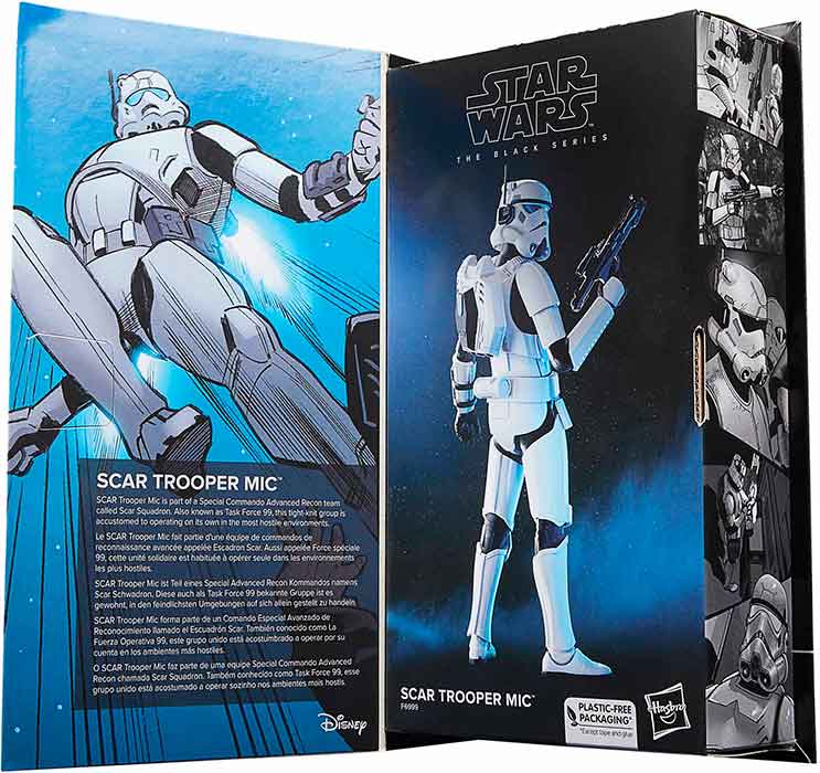 This collectible 6-inch-scale Black Series figure is detailed to look like SCAR Trooper Mic from Star Wars comic books, featuring premium detail, multiple points of articulation, and comics-inspired blaster accessories.