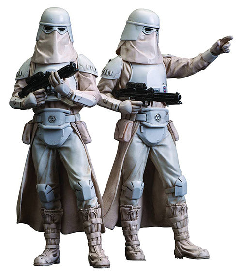 Description: FFrom Koto. Kotobukiya returns to Star Wars: The Empire Strikes Back with the ARTFX+ Snowtrooper 2-pack! Build your own army of elite Imperial troopers specially trained for harsh, cold environments. The 2-pack includes multiple arm parts, allowing for display in four different poses. Each of these 1/10 scale ARTFX+ troopers stands 7.1" tall.