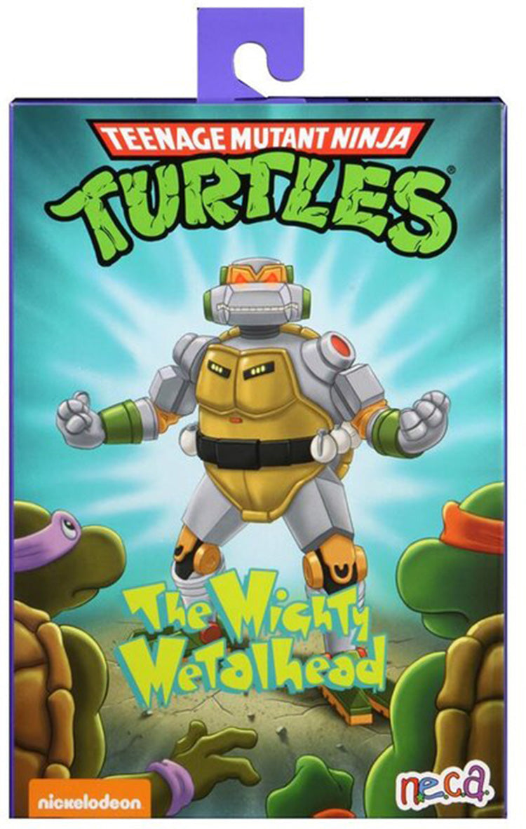 Description: Based on the classic 1980's Teenage Mutant Ninja Turtles cartoon series, Metalhead debuts as the first deluxe action figure in the line! With the minds of all four ninja turtles ingrained into its programming, this robotic reptile comes with a full arsenal of accessories including 6 different hands, swappable drill & vacuum arm attachments, and opening chest panel with plug in gun! Standing at nearly 7" tall with a hinged jaw, Metalhead makes for a formidable adversary. Comes in 5th panel window box with new packaging art, an homage to the classic VHS tapes.